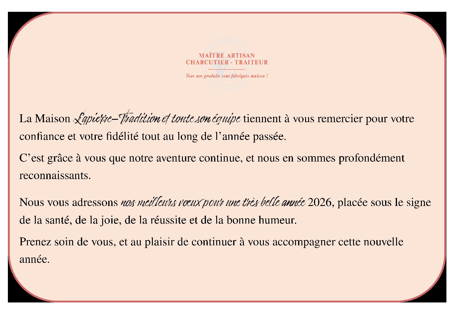 CARTE MAISON LAPIERRE-TRADITION DU VENDREDI 9 AU DIMANCHE 11 JANVIER 2026